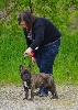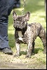 excellent sujet, ne se présente pas en état excellent roach back, bringé idéal, excellent crâne, devrait être plus remouché, excellent prognatisme, belles rides, excellente encolure, bons pieds, ligne dessus et dessous correcte; queue excellente, gentil caractère, excellente démarche